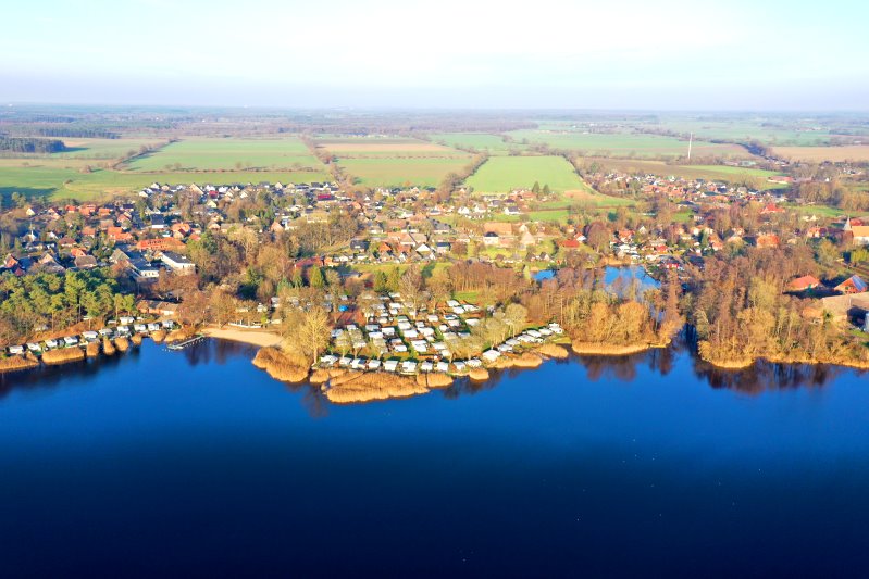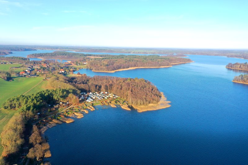 | Blick über den Schaalsee nach Zarrentin. Deutschland, Mecklenburg-Vorpommern 17.12.2025 Flug Nr. mp413 |