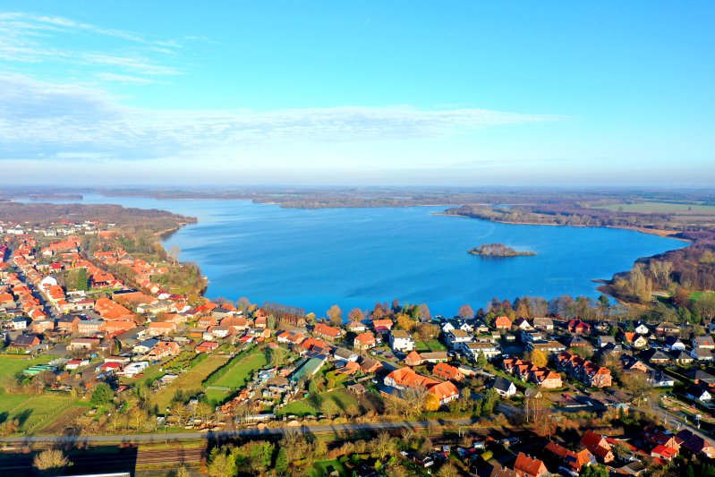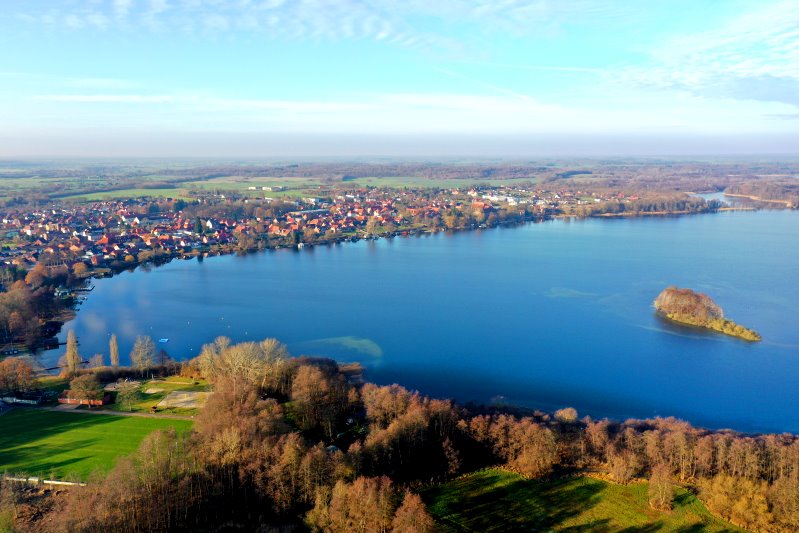 | Blick auf Zarrentin und den Schaalsee. Deutschland, Mecklenburg-Vorpommern 17.12.2025 Flug Nr. mp413 |