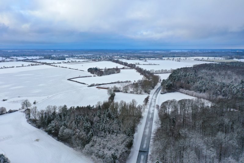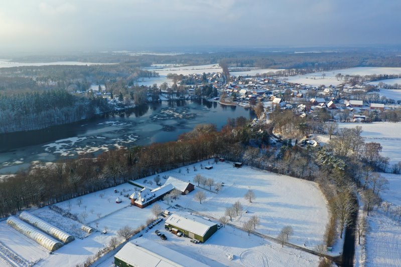 | Verschneite Winterlandschaft zwischen Salem und Kitlitz. Deutschland, Schleswig-Holstein 05.01.2026 Flug Nr. mp431 |