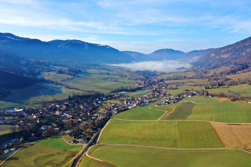 | Blick auf Crémines. Schweiz, Kanton Bern 18.01.2026 Flug Nr. mp437 |
