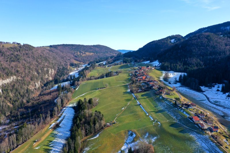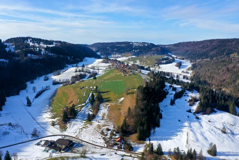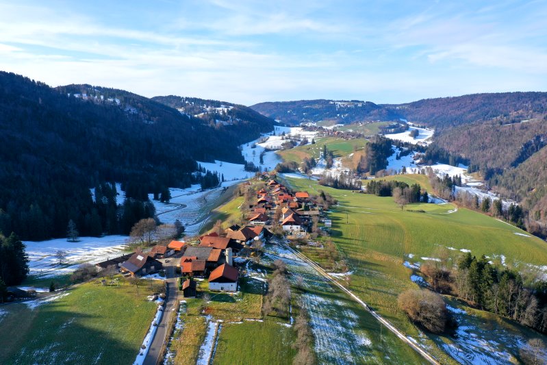 | Blick auf Souboz. Schweiz, Kanton Bern 18.01.2026 Flug Nr. mp438 |