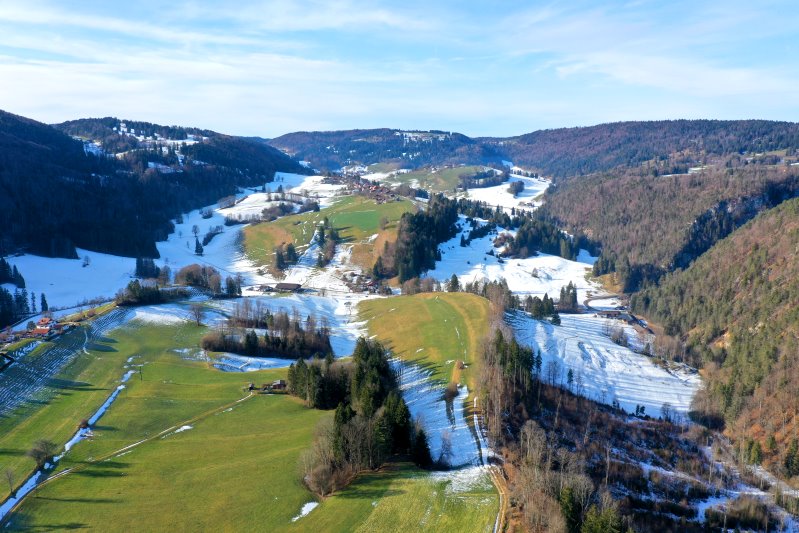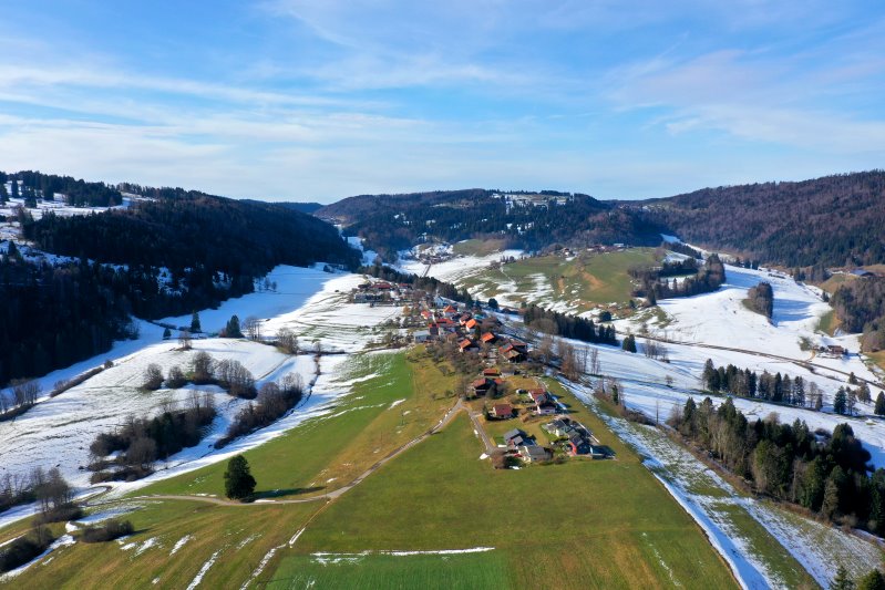 | Blick auf Sornetan. Schweiz, Kanton Bern 18.01.2026 Flug Nr. mp438 |