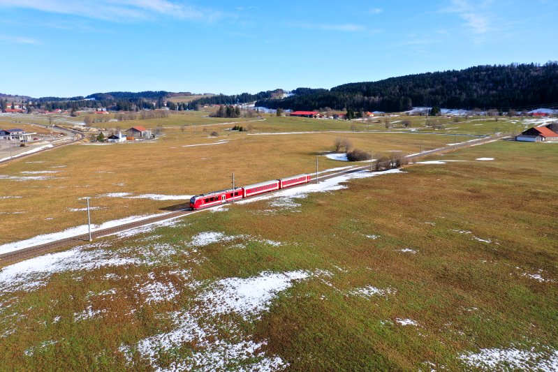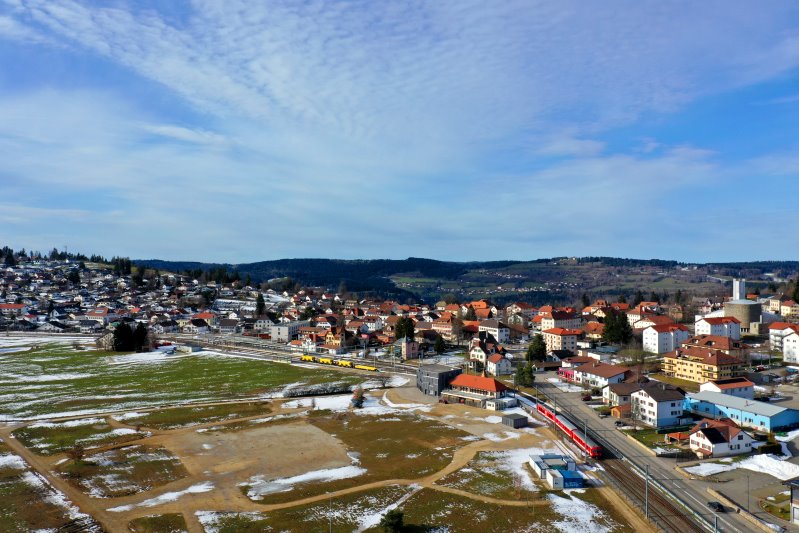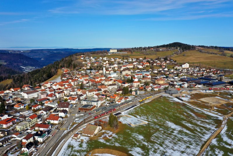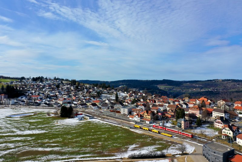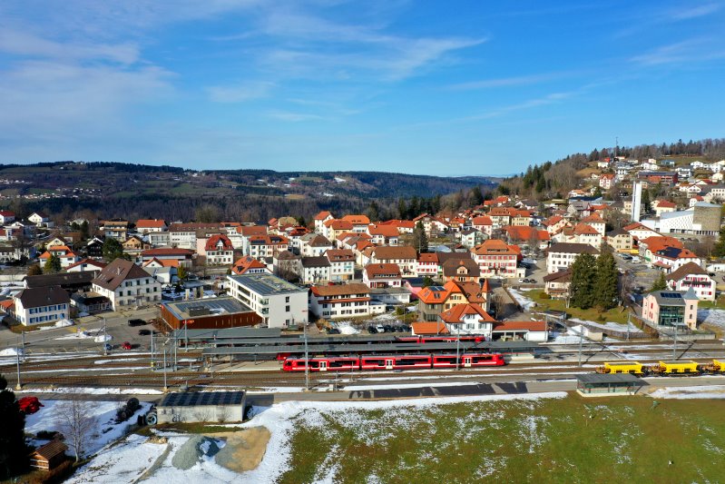 | Der Bahnhof von Le Noirmont. Schweiz, Kanton Jura 18.01.2026 Flug Nr. mp440 |