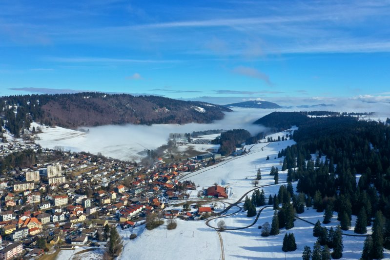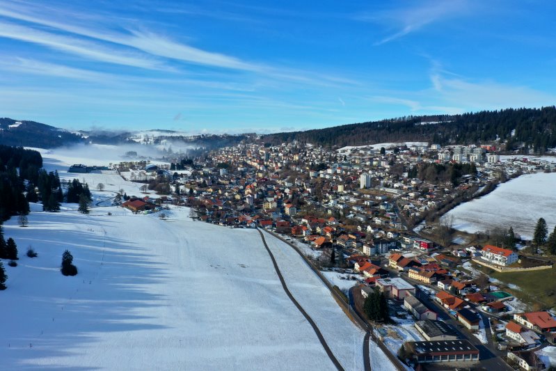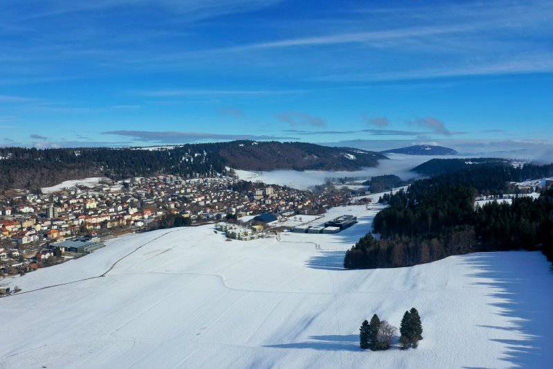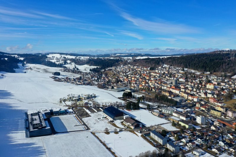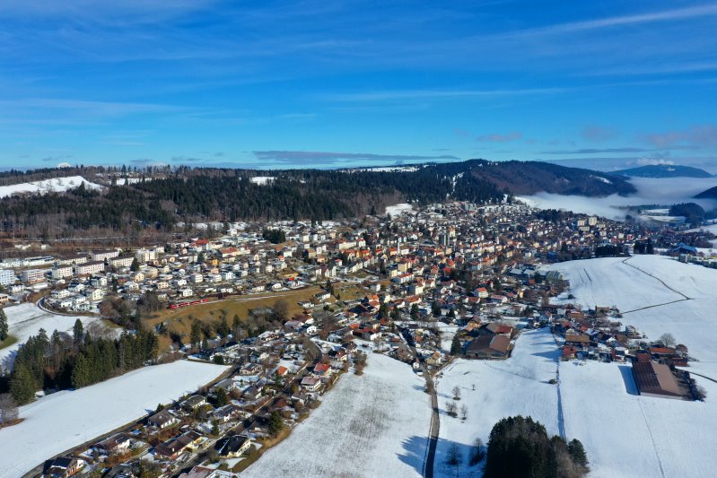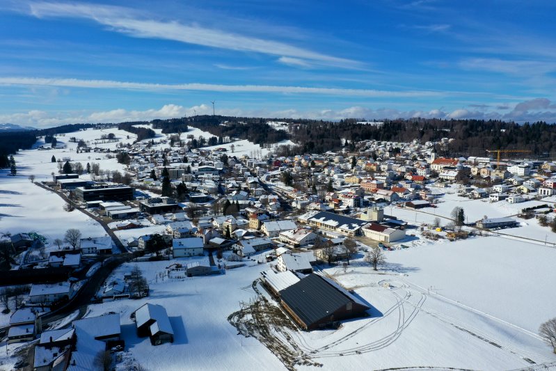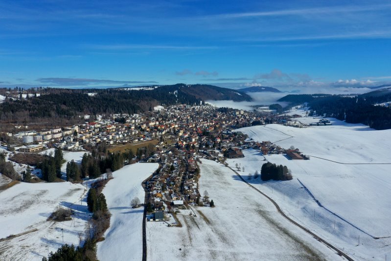 | Blick auf Les Breuleux. Schweiz, Kanton Jura 01.02.2026 Flug Nr. mp448 |