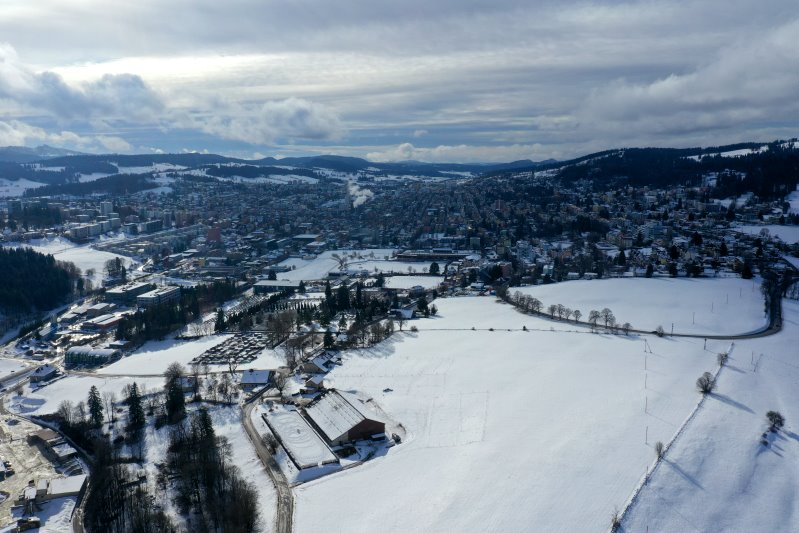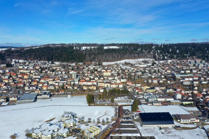| Blick auf La Chaux-de-Fonds. Schweiz, Kanton Neuenburg 01.02.2026 Flug Nr. mp449 |