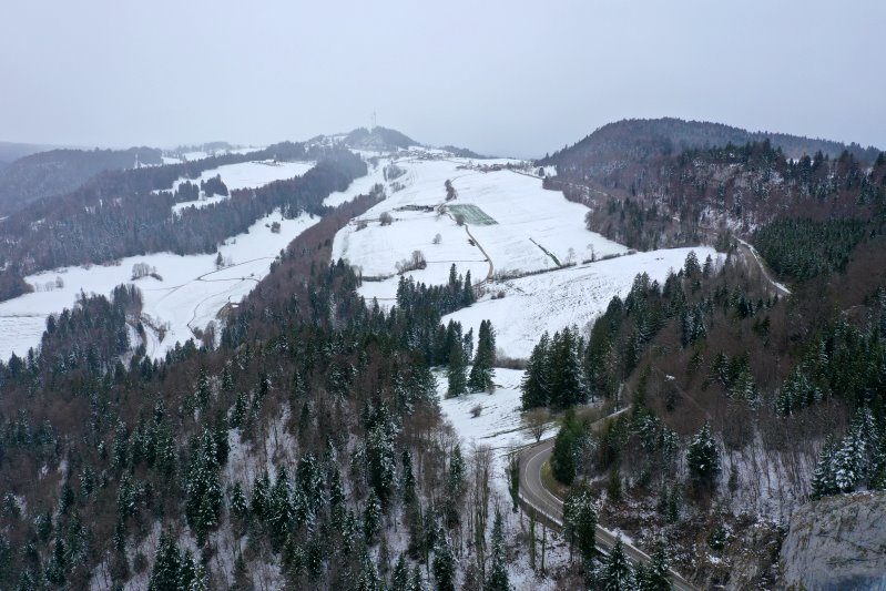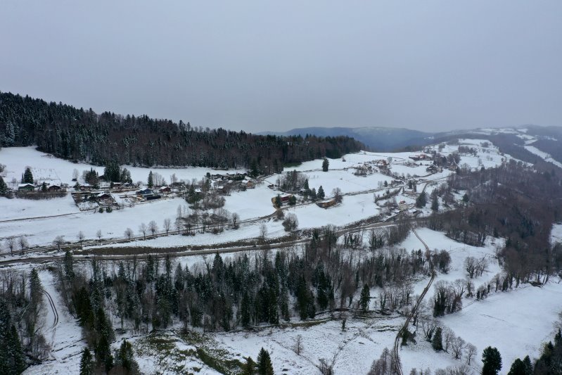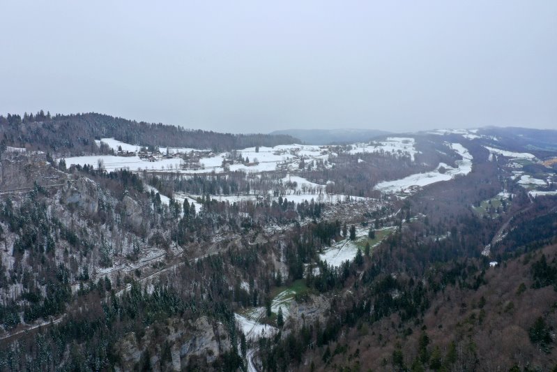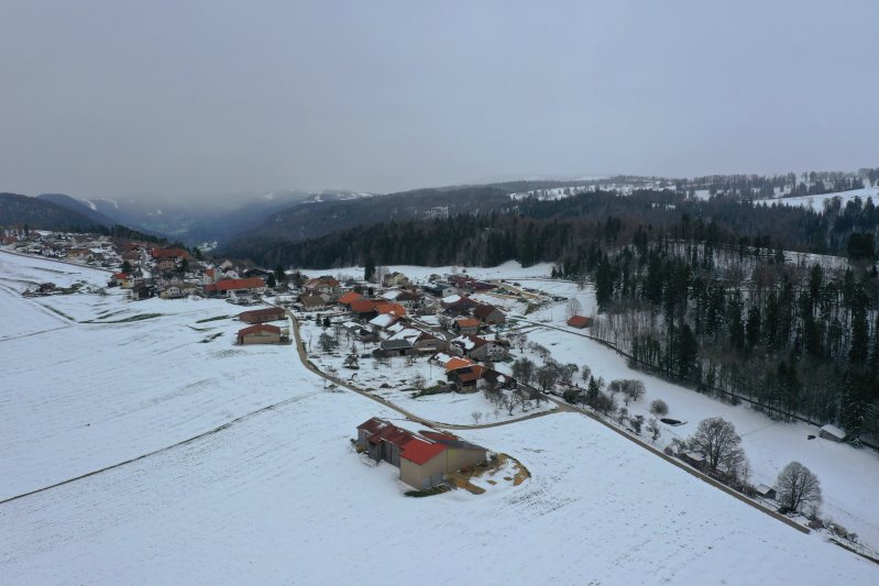 | Blick auf Saulcy. Schweiz, Kanton Jura 28.03.2026 Flug Nr. mp458 |