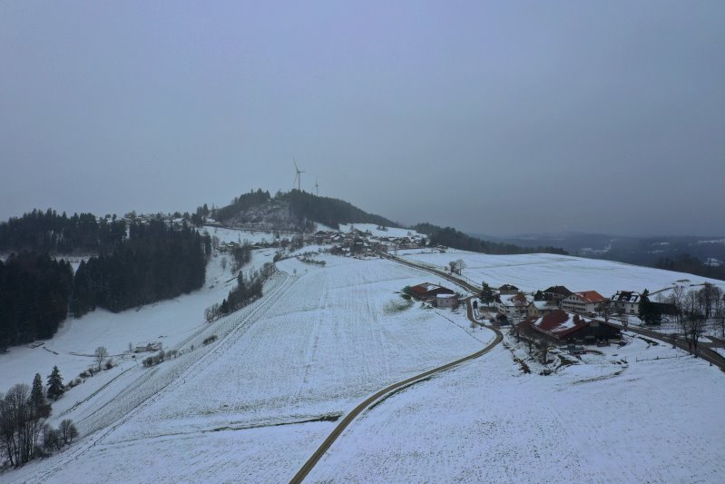 | Blick auf Saint-Brais. Schweiz, Kanton Jura 28.03.2026 Flug Nr. mp458 |
