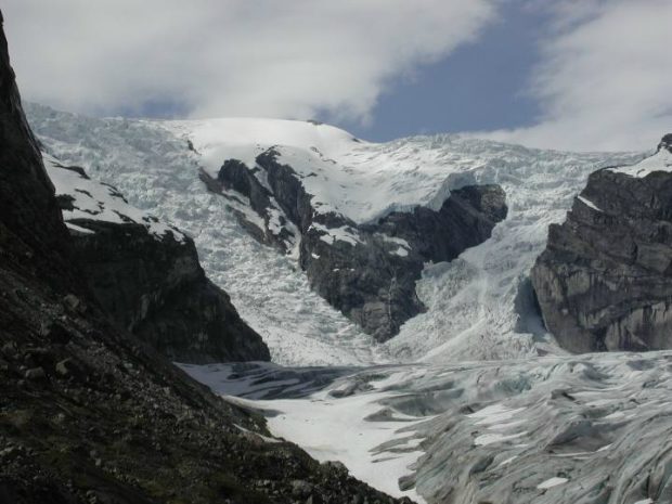 Austerdalsbreen. Leider zogen sich über dem Jostedalsbreen die Wolken zusammen und die Landschaft
