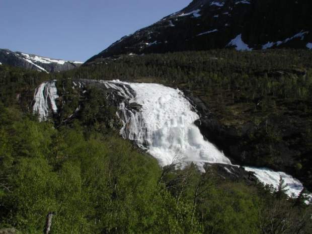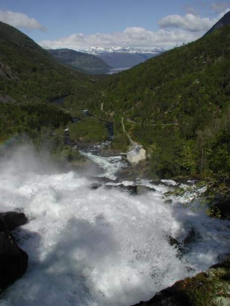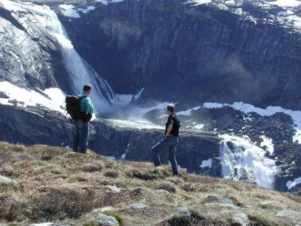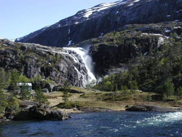 Da der Fluss Kinso von der Hardangervidda über vier tosende Wasserfälle und einige Stromschnellen