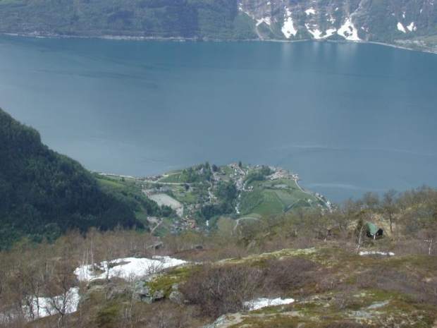 Plateau steil in den Sørfjorden ab. Da wir uns an dessen Ufer befinden, müssen wir die steilen